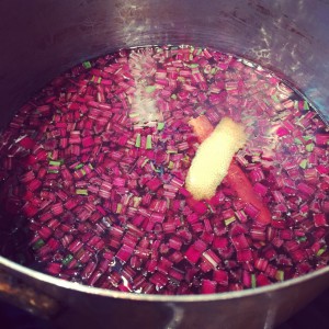 I originally developed this recipe as a way to use some beet stems that were way too pretty to toss into the compost heap. But why couldn’t it work for other stems as well? The stems are cooked down with sugar, bourbon and spices over a long enough period that any tough stems are sure to soften and take on the added flavors while imparting a little of their own too. And I think you can take the flavorings in all sorts of fun directions – play around with different types of booze, sugars and flavorings. I haven’t tested those below but really, how could they turn out bad?!