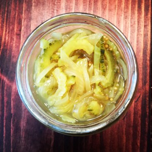 Gina and I were fortunate enough to attend a Quick Pickle workshop at Crabtree Farms a few weeks ago. It was led by Caroline Thompson from The Farmer’s Daughter and was co-sponsored by Harvested Here (we are one of their customers!). We had a great time, sampling lots of quick pickles and then making a batch of our own to take home. I made quick pickled whole okra with fresh mint, cumin, hot peppers and garlic and loved it! You get very little “slime” with this technique and it is really quick to put together. They are great for snacking and really satisfy the need for something crunchy and tangy.